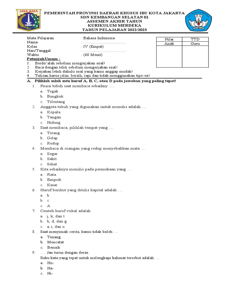 Ujian Kenaikan Kelas (UKK) merupakan gerbang penentu keberhasilan siswa di jenjang pendidikan selanjutnya. Bagi siswa Kelas 4 Sekolah Dasar, mata pelajaran Bahasa Indonesia memegang peranan krusial. Kemampuan membaca, menulis, menyimak, dan berbicara yang solid akan menjadi fondasi penting untuk materi-materi di kelas yang lebih tinggi. Menghadapi UKK Bahasa Indonesia Kelas 4, rasa cemas dan ketidakpastian seringkali menghampiri. Namun, dengan persiapan yang matang dan strategi latihan soal yang tepat, kesuksesan bisa diraih.