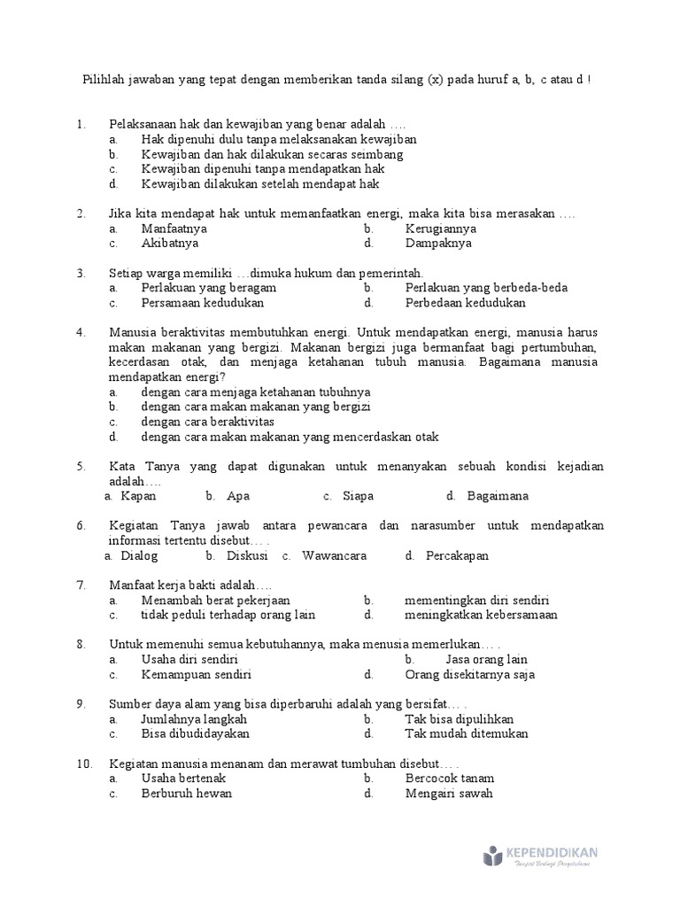 - Sumber Online: Banyak situs web pendidikan yang menyediakan bank soal atau kuis interaktif untuk SD.